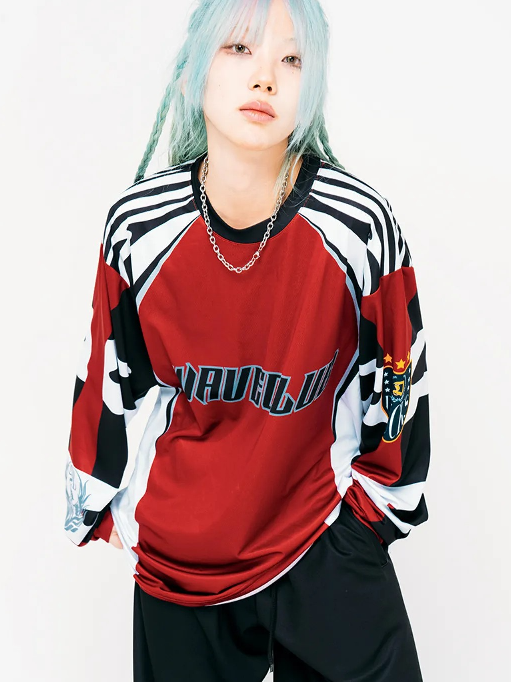-모터스포츠 무드의 그래픽과 어깨의 지브라 패턴 포인트