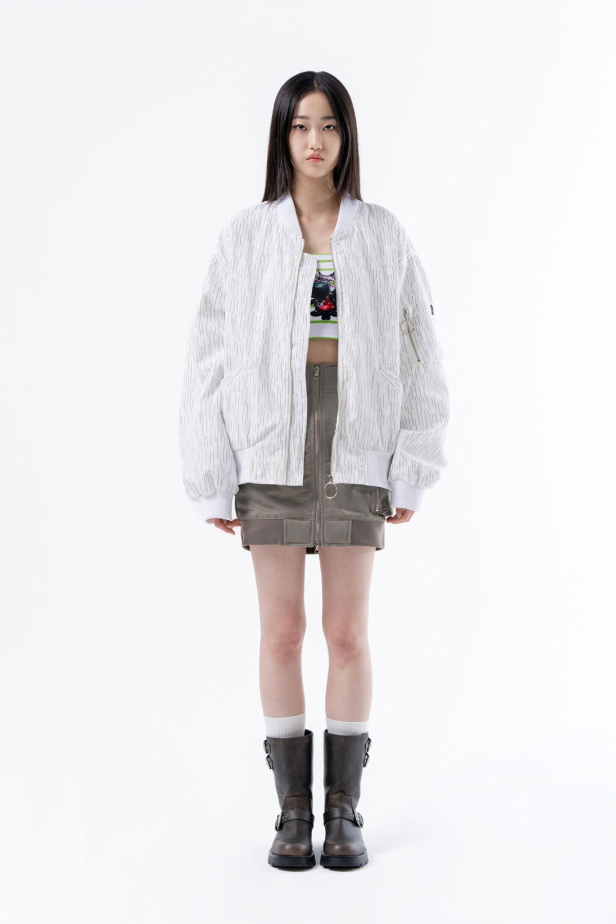 -화이트 컬러에 카키 레인 카모 패턴 디자인